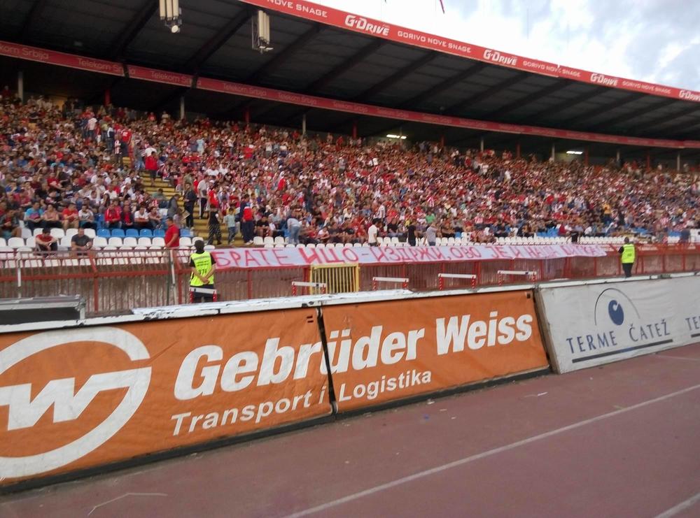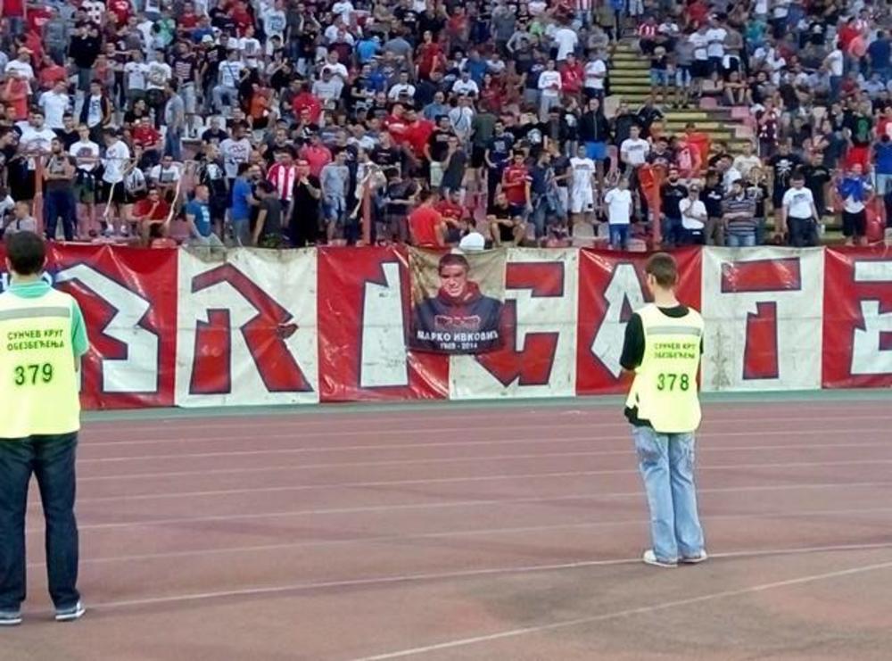 20:10 - Dirljiv transparent na istočnoj tribini Rajka Mitića.