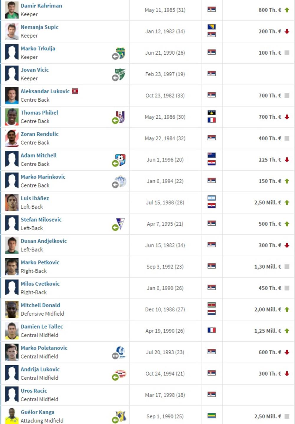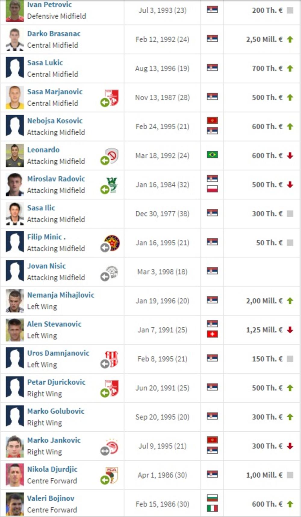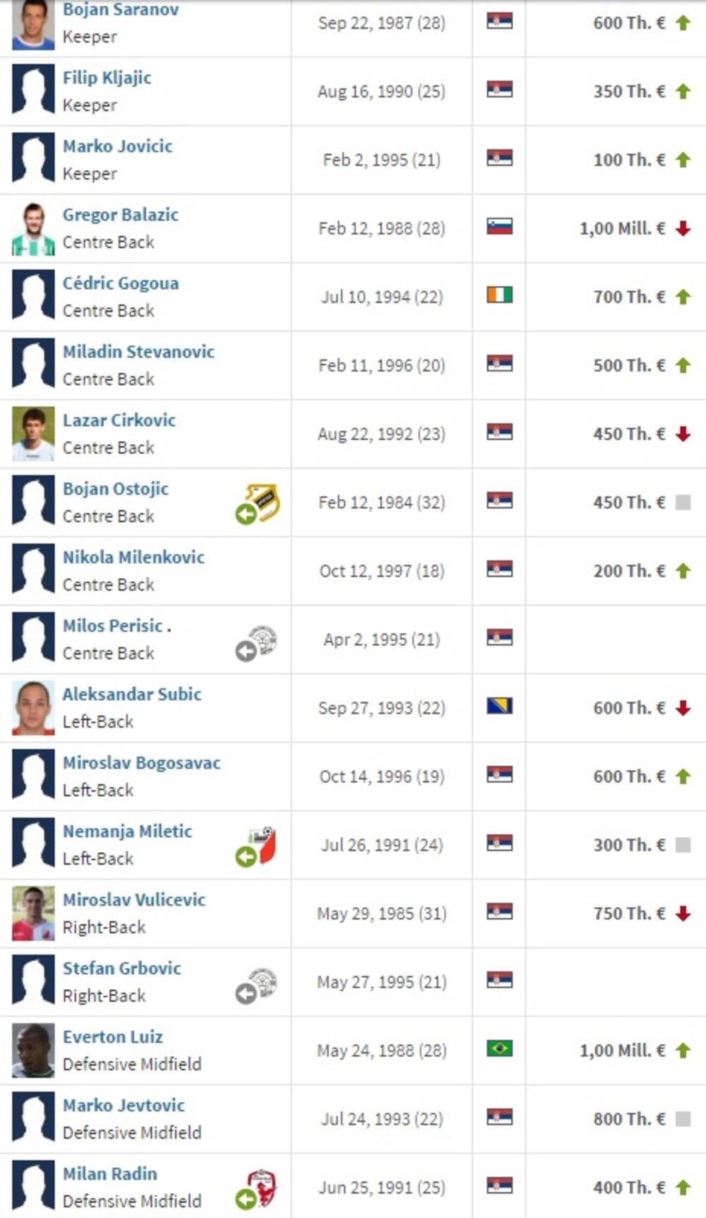 Superliga SrbijeFK Crvena zvezdaFK PartizanFK ČukaričkiFK VojvodinaFK Radnički NišFK RadFK RadnikFK NapredakFK Spartak SuboticaFK Mladost Lučani