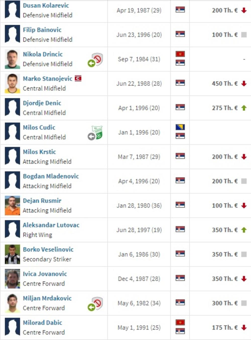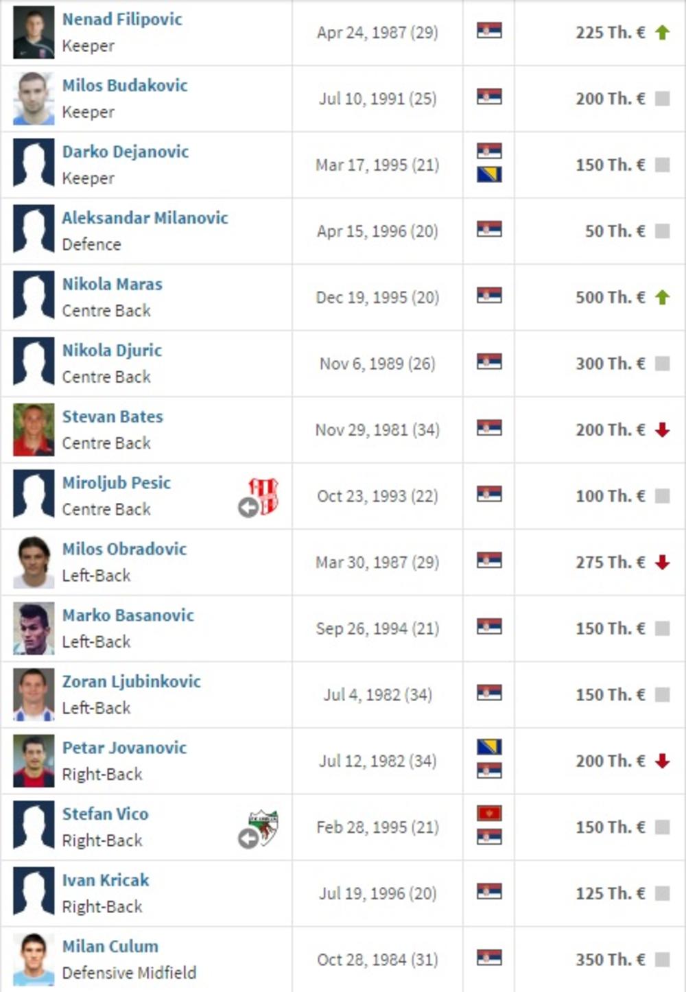 Superliga SrbijeFK Crvena zvezdaFK PartizanFK ČukaričkiFK VojvodinaFK Radnički NišFK RadFK RadnikFK NapredakFK Spartak SuboticaFK Mladost Lučani