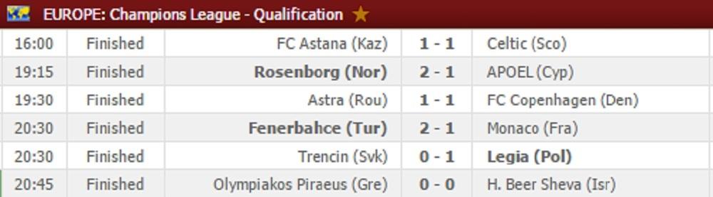 Kvalifikacije za Ligu šampionaFK OlimpijakosFK MonakoFK FenerbahčeFK RozenborgFK Astra ĐurđuFK APOELFK Legija VaršavaFK Trenčin