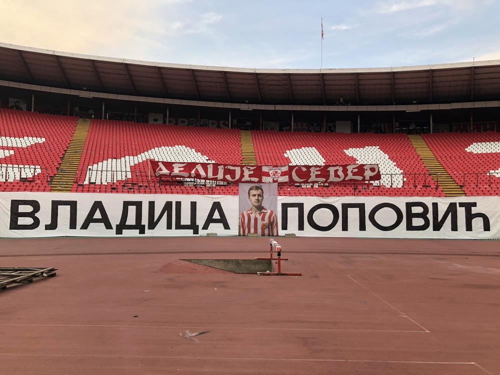 Na severnoj tribini osvanula je velika parola crnim slovima gde piše njegovo ime, kao i fotografija u dresu svoje Crvene zvezde.