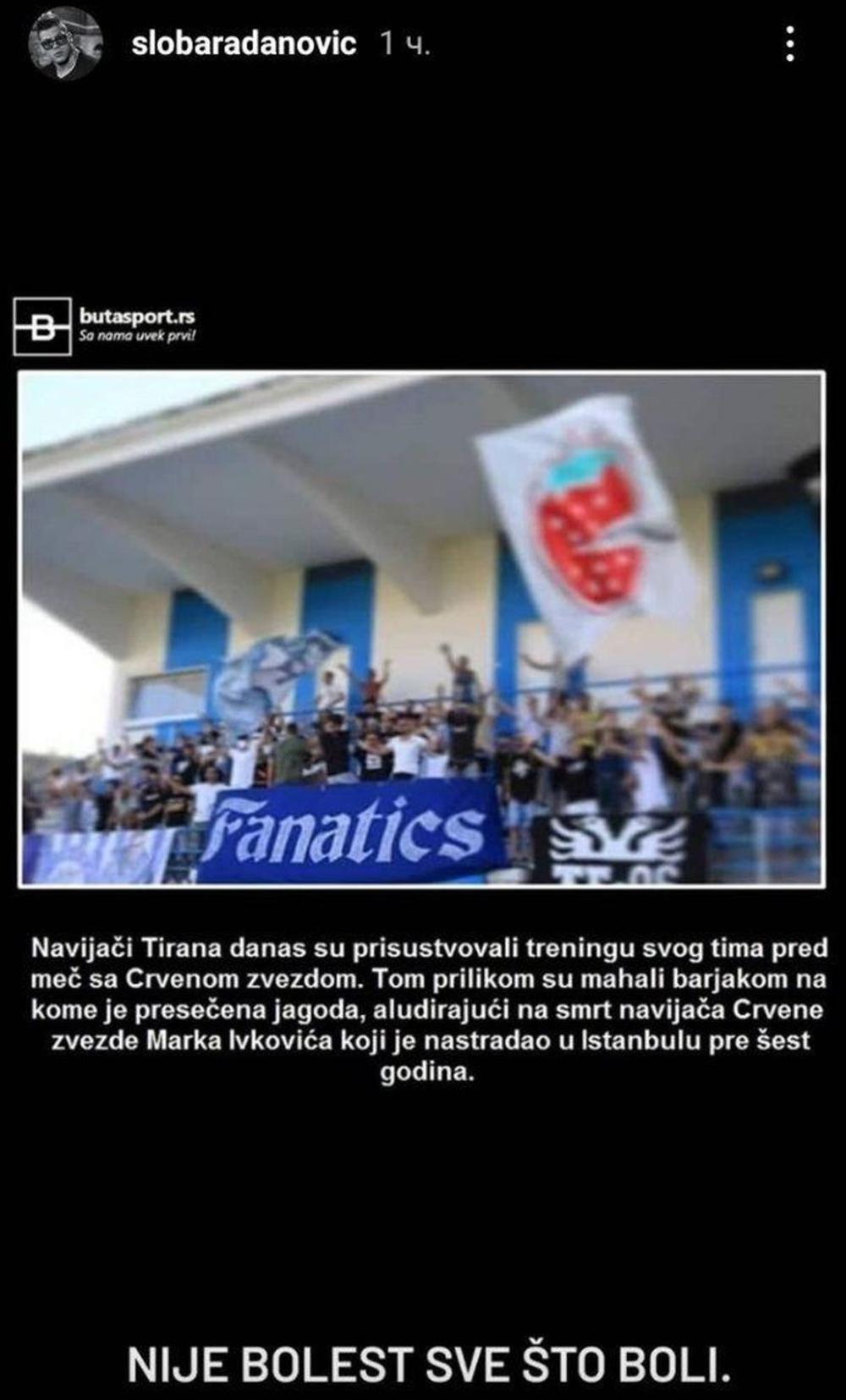 Srpski pevač i učesnik Zadruge, Sloba Radanović oglasio se na Instagramu porukom za navijače Tirane.