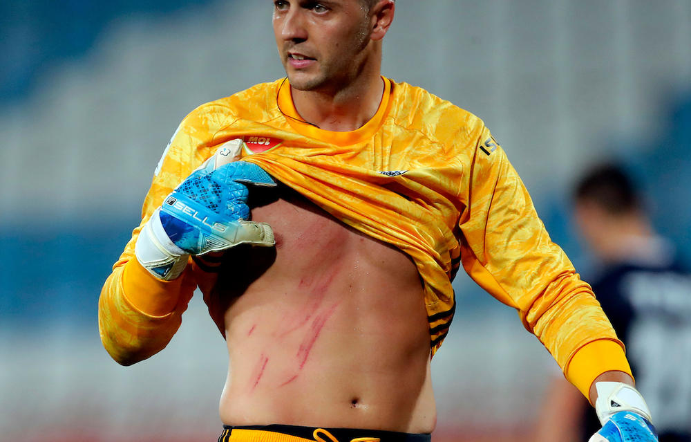 Tako je golman TSC-a prošao samo sa velikim ogrebotinama po grudima i stomaku.