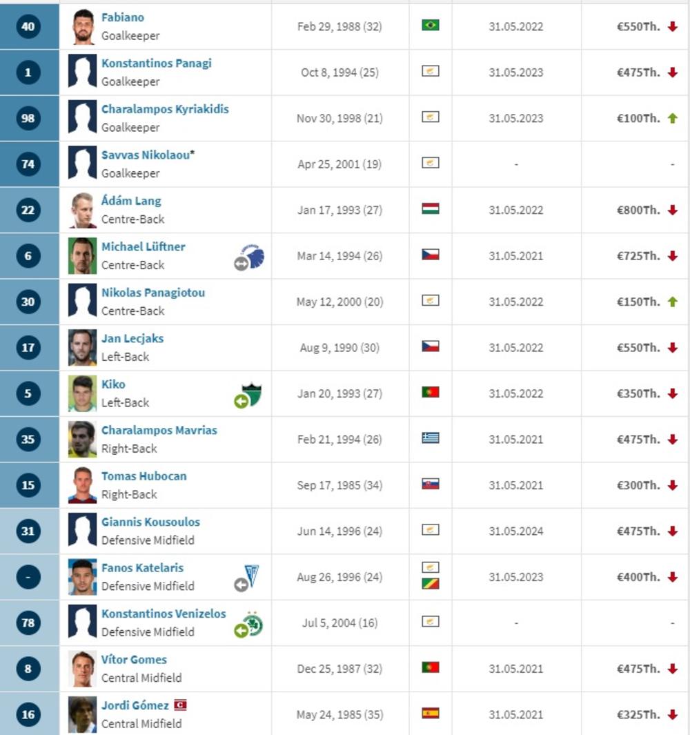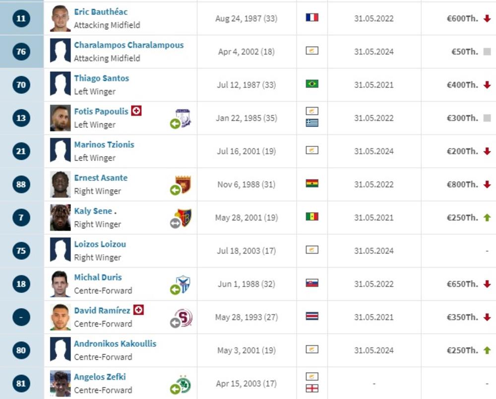 Što se aktuelnog igračkog kadra tiče, najskuplji igrač ekipe je tek pridošli Ernest Asante, koji vredi 800.000, svi ostali su jeftiniji.