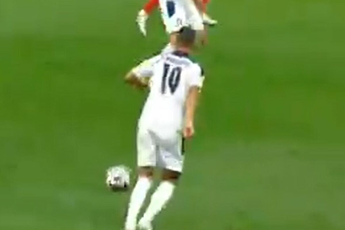 A, pre svega, smešan... On je dobio loptu unazad od jednog saigrača, a umesto da je ispuca ili primi, sapleo se. I to o svoju nogu. Da, dobro ste pročitali.