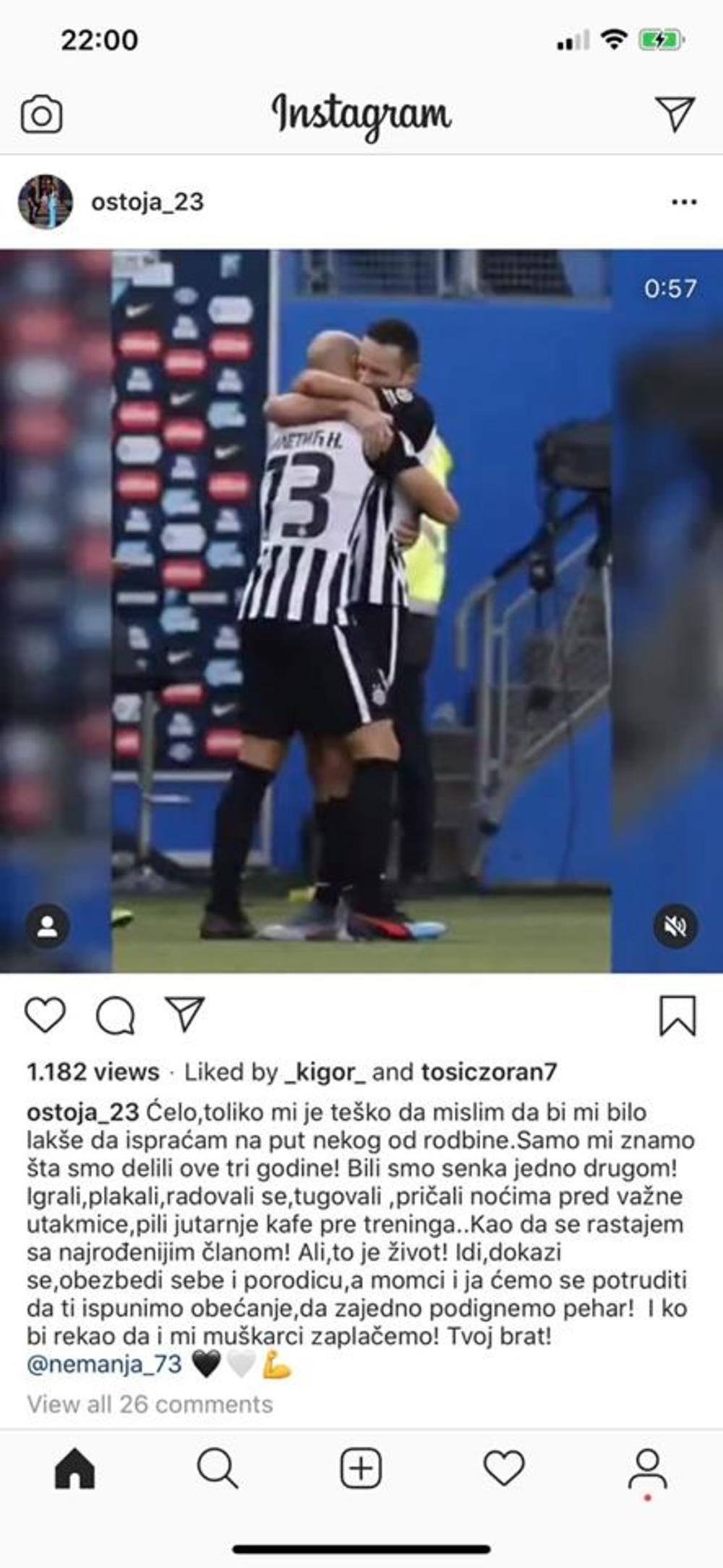 Doskorašnji defanzivac Partizana će nastaviti karijeru u Al Raedu, a Ostojić se na Instagramu oprostio od svog velikog prijatelja na veoma emotivan način.