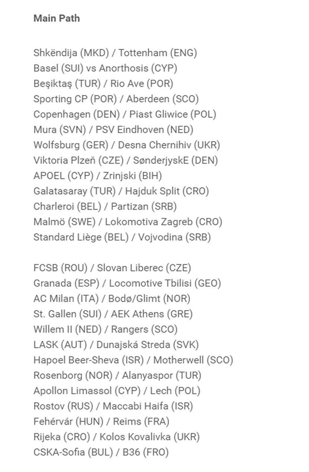 I crno-belima, kao i Vojvodini, na putu do grupne faze će stajati jedan od 13 potencijalnih rivala, među kojima mogu da budu imena poput Milana, AEK-a, Rendžersa, Granade, Remsa, Rostova, ali i FCSB (koji je sinoć izbacio TSC), Hapoel Ber Šive, Rozeborga, Apolona, Rijeke i CSKA iz Sofije.