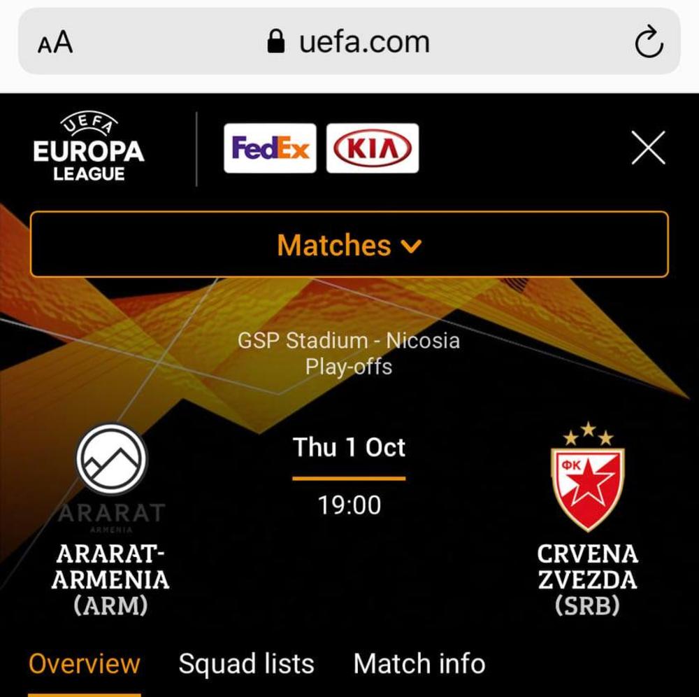 Duel Zvezde i Ararata će se ipak igrati na Kipru!