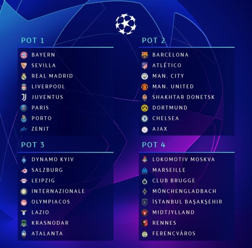 U prvom je osam ekipa koje imaju status nosilaca - Bajern, Sevilja, Real Madrid, Liverpul, Juventus, Pari Sen Žermen, Zenit i Porto.