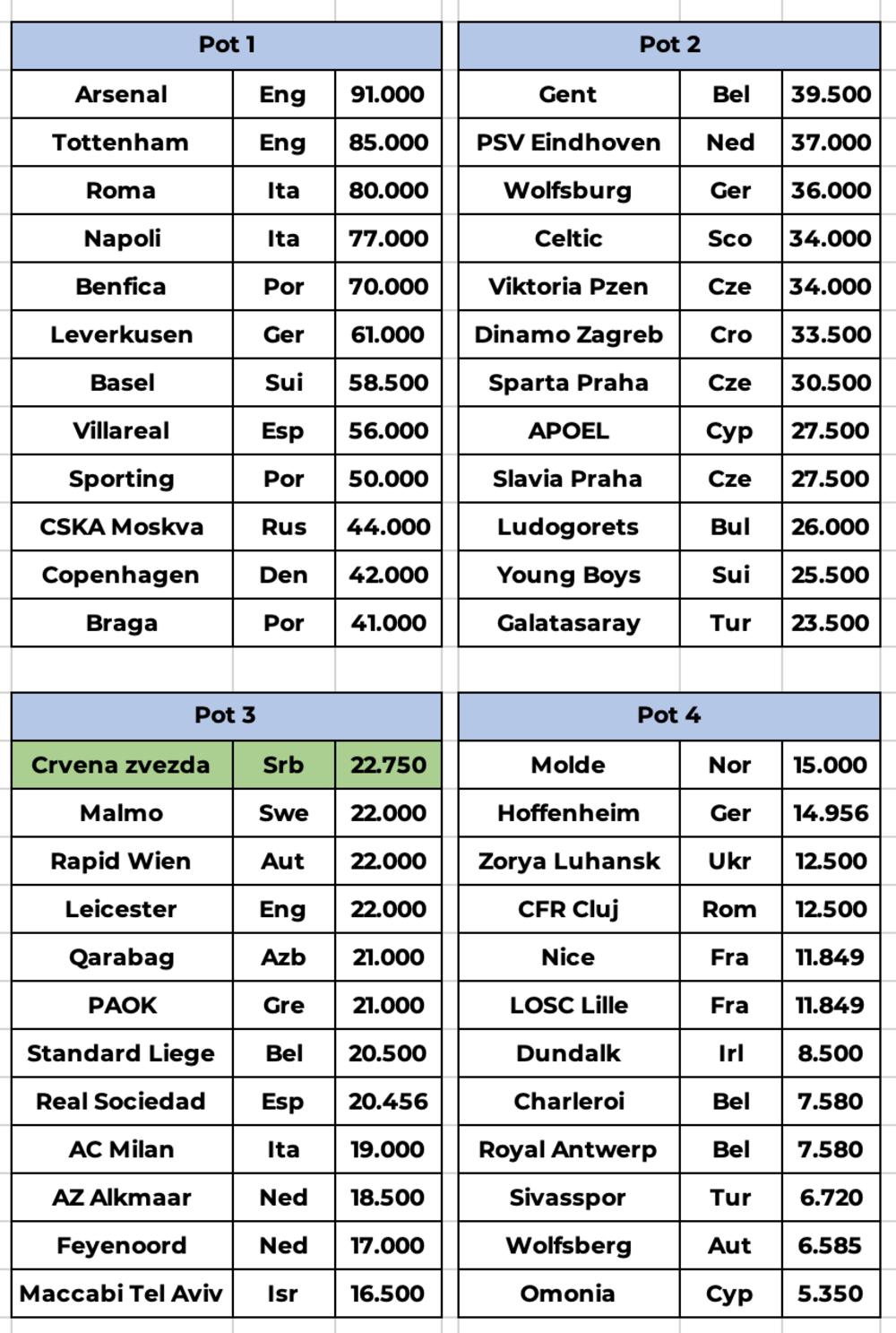 Ali mogu da završe i u grupi sa ekipama Arsenala, Rome, Napolija, Benfike, Leverkuzena, Viljareala...