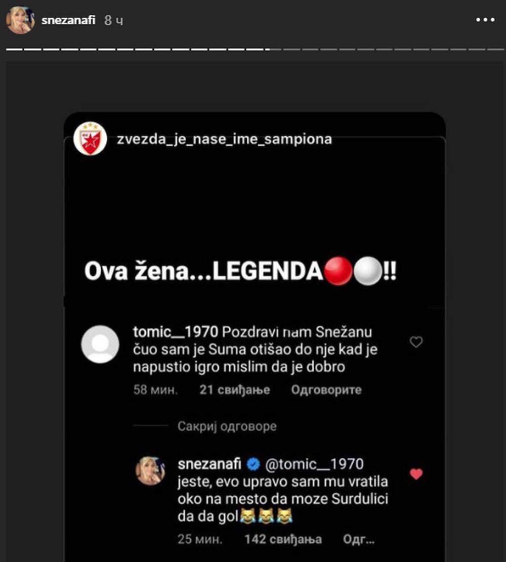 Međutim, neki smatraju da je i njen odgovor bio pomalo neumesan, pa je to izazvalo još veći bes među navijačima Partizana.