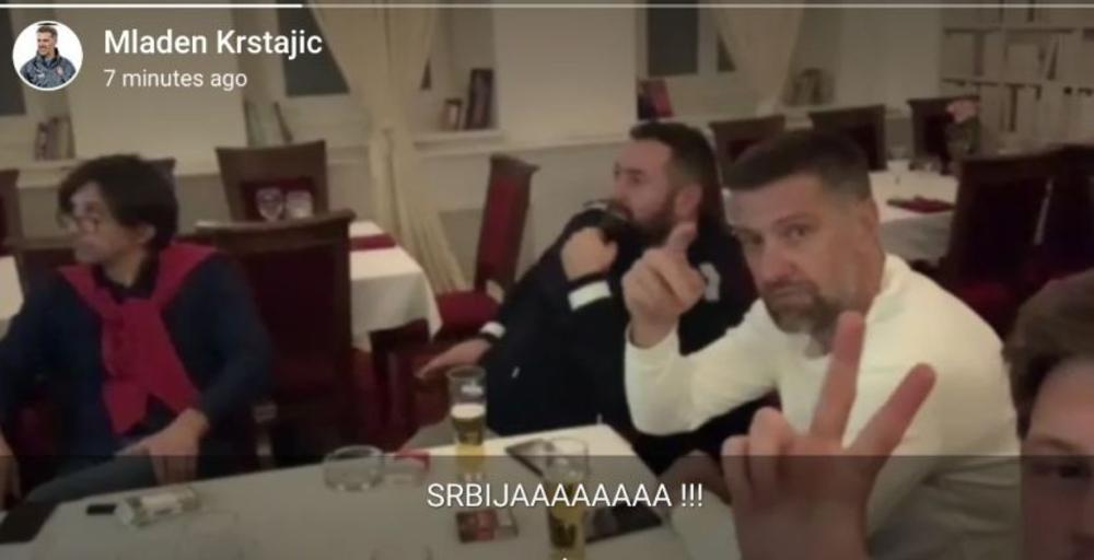 Mladen Krstajić je na Fejsbuku objavio snimak iz kafane na kojem se vidi kako sa društvom prati meč Srbija - Škotska.