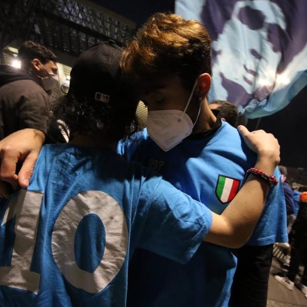 Zato je odjekivala i pesma i ispred "Bombonjere", i ispred "Kamp Noua", i ispred "San Paola" koji se već od danas u njegovu čast zove "Dijego Maradona".