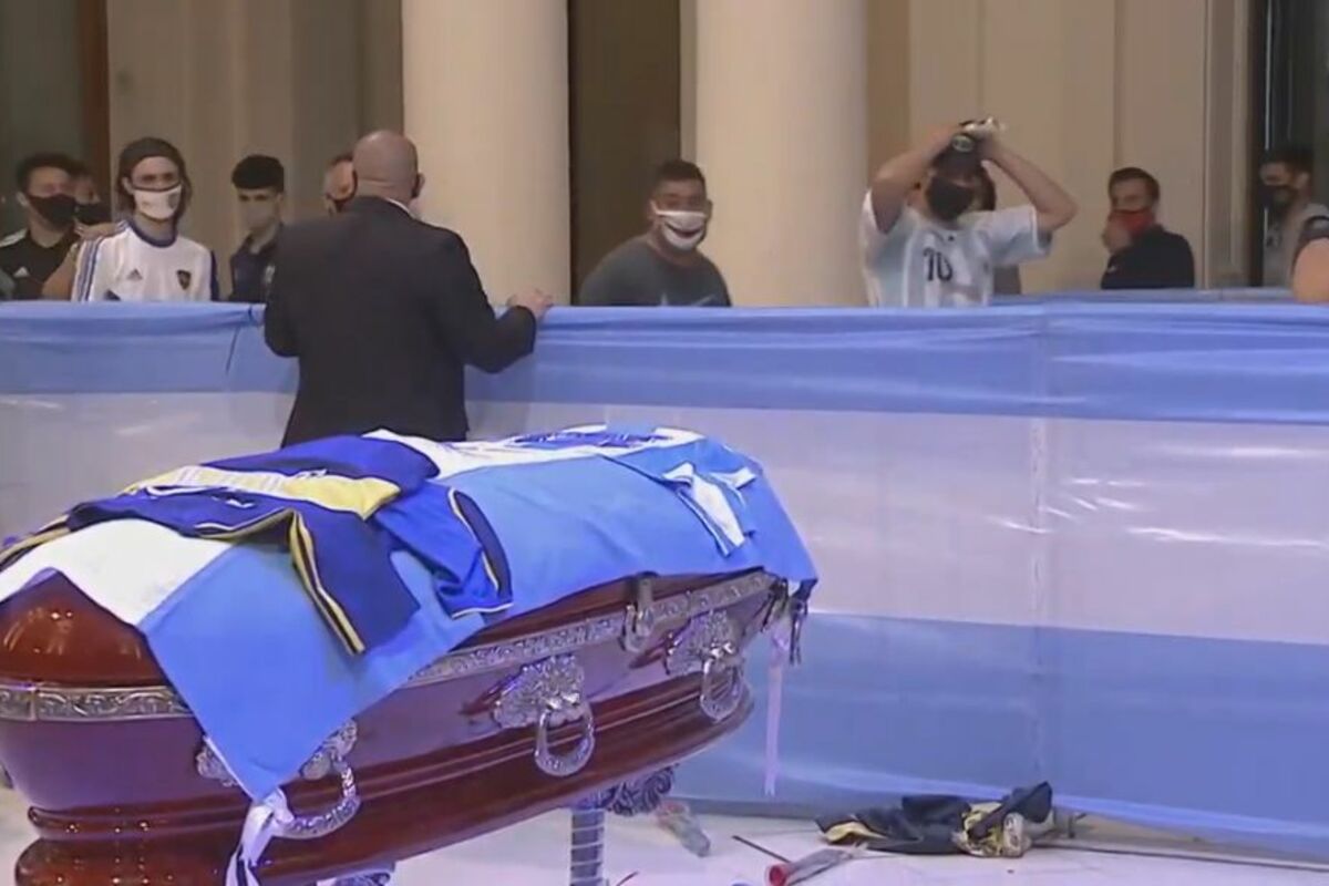 Ono što se može videti jeste da se na kovčegu nalaze tri relikvije koje su bile svete za najboljeg fudbalera svih vremena. To su argentinska zastava, dres Argentine sa brojem 10 koji je nosio, kao i dres Boke Juniors.