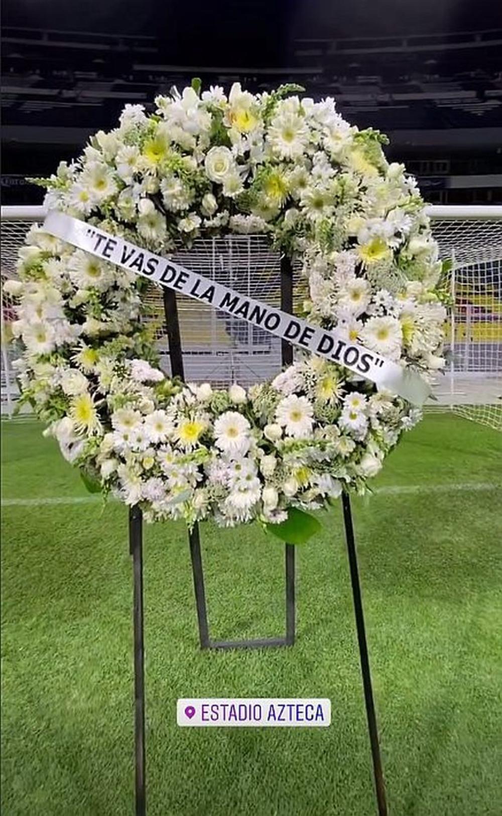 Na mestu gde je Maradona izveo "božiju ruku" kada je rukom dao gol Englezima, istaknut je venac sa oproštajnom porukom od stadiona Asteka.