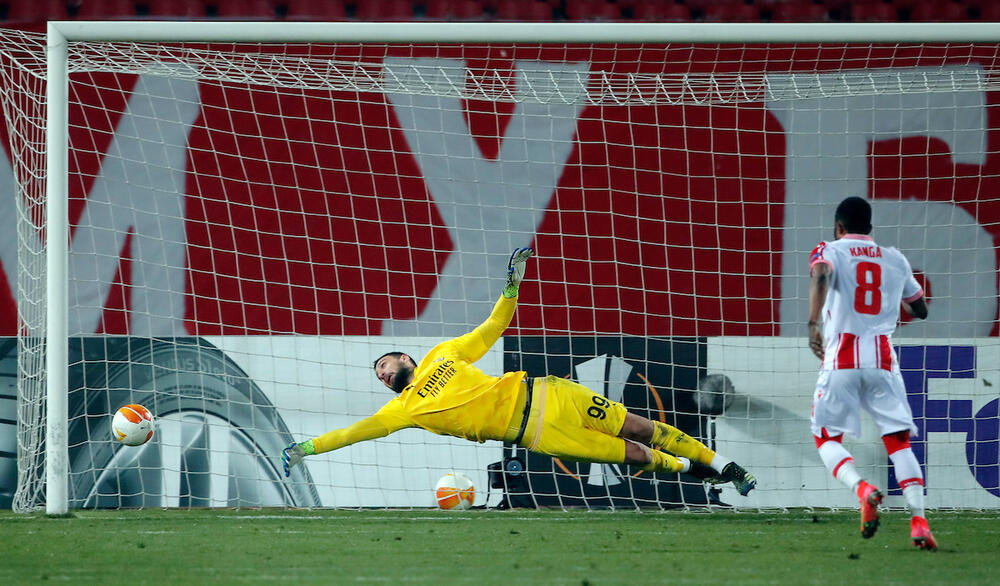 8. minut - prvi šut na gol Donarume, Kanga je pokušao sa distance, bez problema za reprezentativca Italije.
