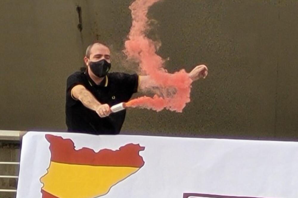 Grupa "Haser Nasion" (Stvaranje nacije) je na jedan nadvožnjak ispod kog je prolazio autobus fudbalera sa Kosova okačio transparent sa teritorijama Katalonije i Kosova u bojama španske i srpske zastave uz natpis: