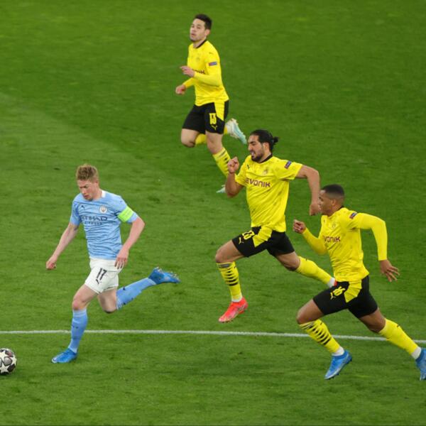 >Borusija je nadoknadila prednost Sitija i zbog gola u gostima, sada ima ukupnu prednost protiv lidera Premijer lige. Strelac gola je bio Džud Belingem u 15. minutu.<