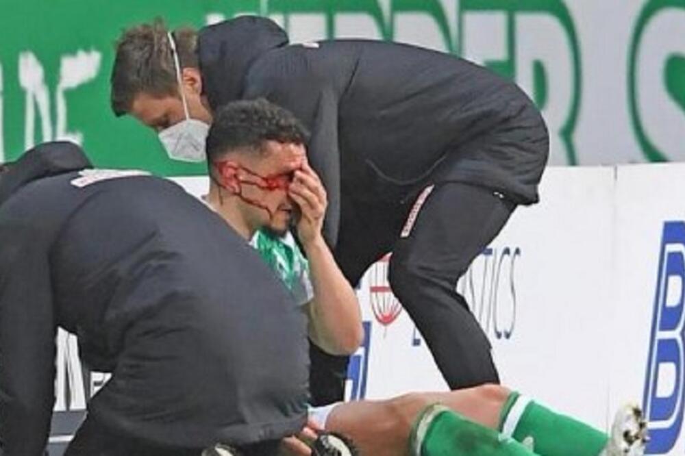 Iako je u jednom trenutku bio potpuno krvavog lica 25-godišnji defanzivac je završio meč, ali sigurno neće moći da nastupi u meču sa Union Berlinom.