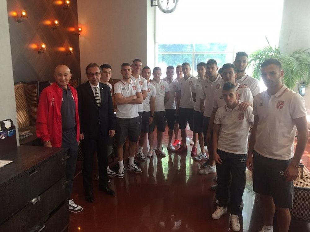 Srpsku reprezentaciju u hotelu Radison Blu u Dohi posetio je i ambasador Jasminko Pozderac, koji je razgovarao sa sportskim direktorom FSS Goranom Bunjevčevićem i selektorom Muslinom.
