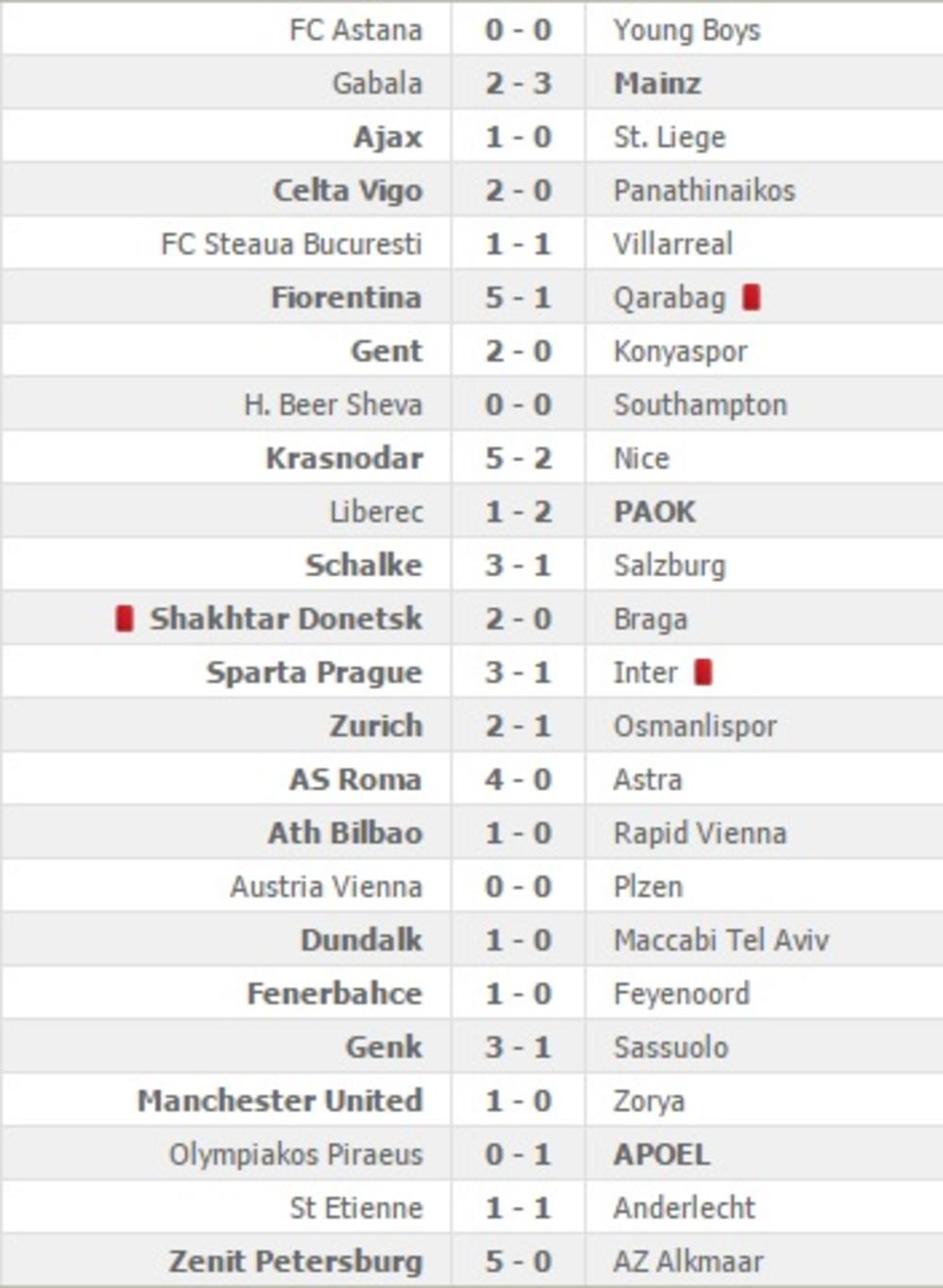 U poslednjim mečevima večeri Mančester junajted trijumfovao je na svom terenu protiv Zorje pogotkom Zlatana Ibrahimovića sa 1:0, a zanimljivo je bilo i u Atini u kojoj je Apoel savladao Olimpijakos sa 1:0.