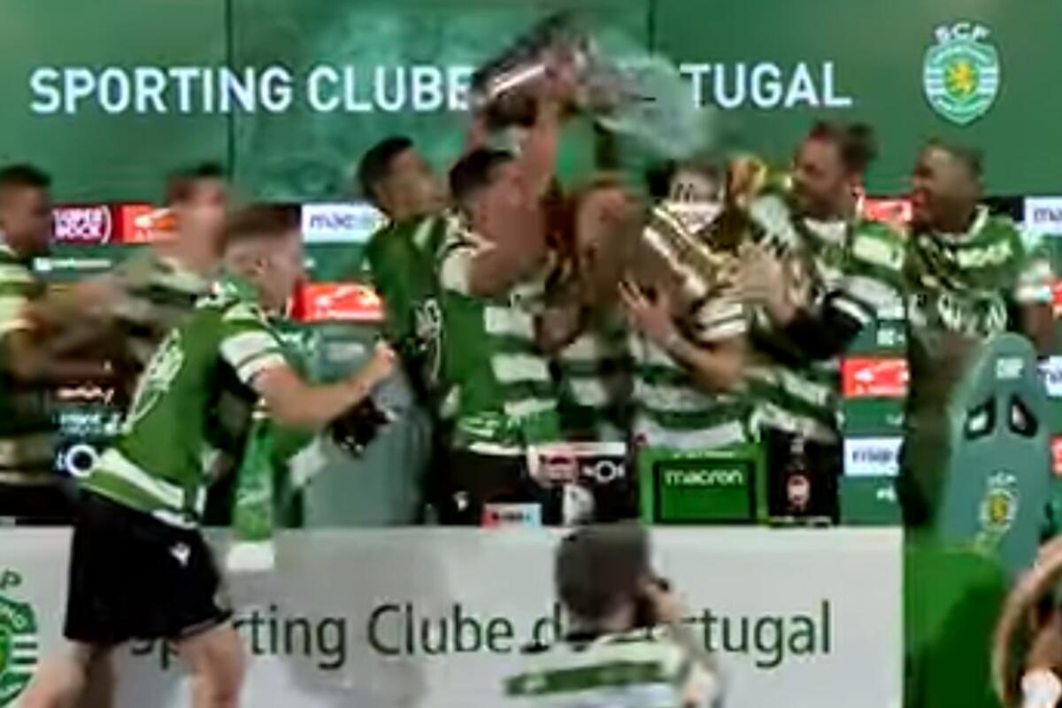 KAD SE TITULA ČEKA 19 GODINA: Fudbaleri Sportinga upali na konferenciju pa okupali i izlupali trenera! (VIDEO)