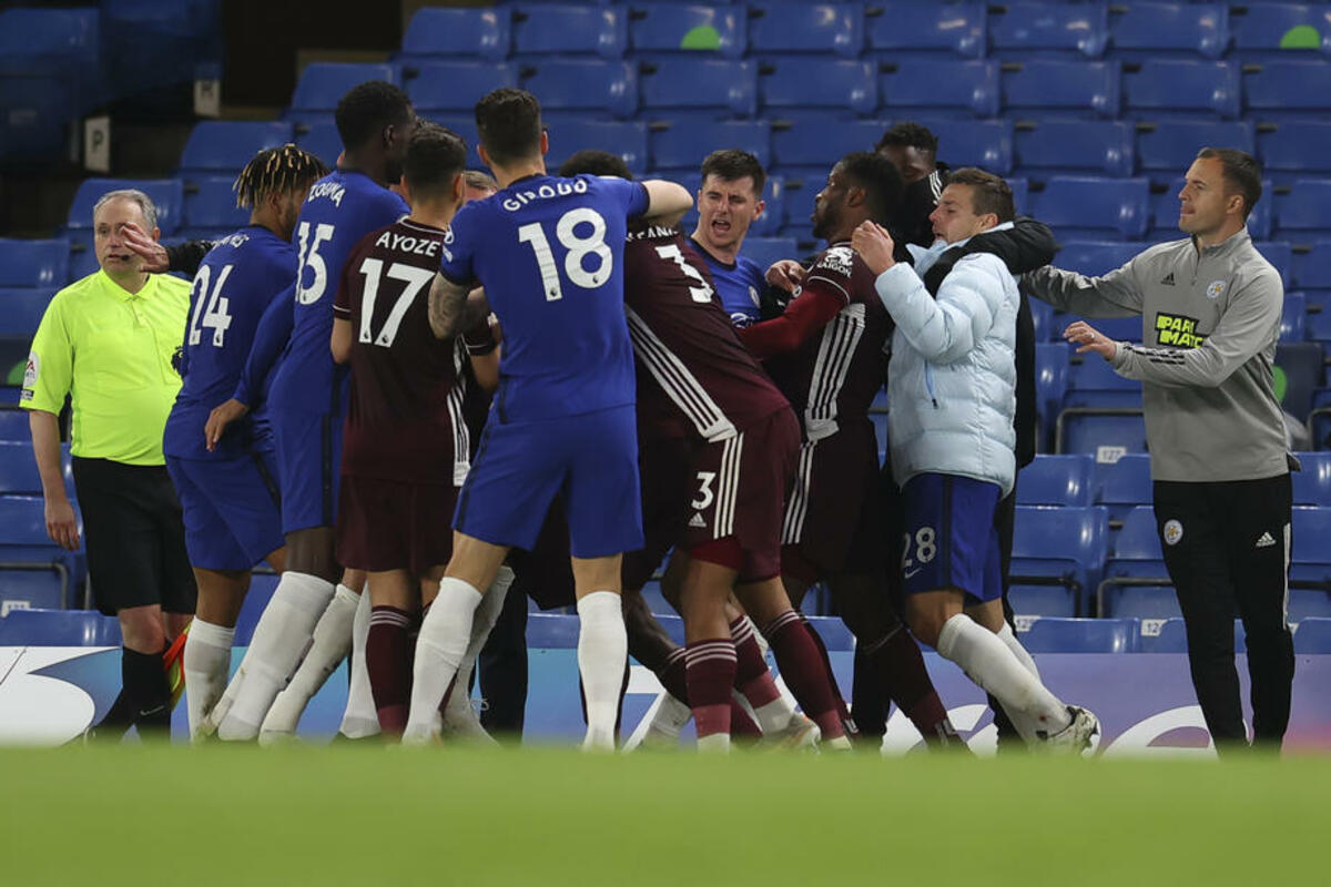 Čelsi je slavio sa 2:1 u direktnom okršaju za mesto u kvalifikacijama za Ligu šampiona, a do koškanja maltene celokupne dve ekipe došlo je u nadoknadi vremena.