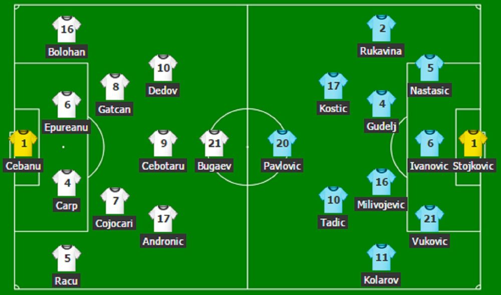 MOLDAVIJA (4-2-3-1): Čebanu – Racu, Karp, Epureanu, Bolohan – Kojočari, Gacan – Andronić, Čebotaru, Dedov – Bugaev.