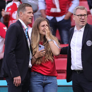 Kapiten Danske Simon Kjer je prvi pritrčao i pomogao Eriksenu, a potom sa golmanom Šmajhelom tešio njegovu suprugu Sabrine Jensen.