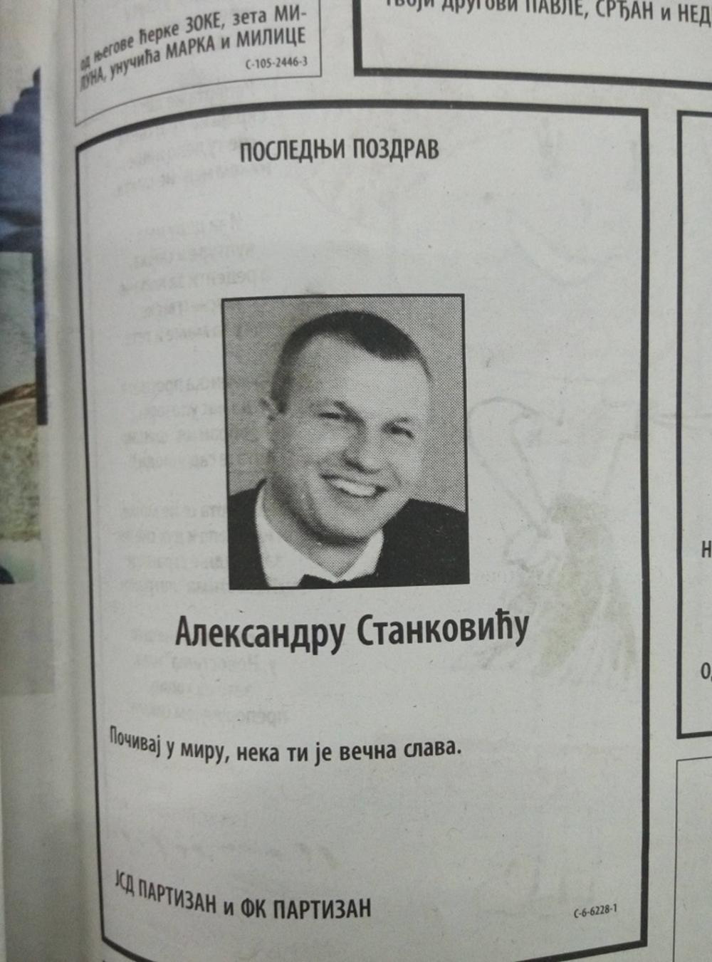 U "Večernjim novostima" osvanula je čitulja koja će mnoge zgroziti, pre svega zbog činjenice da je nastradali navijač pre nekoliko meseci fizički napao čelnika crno-belih i njegovu pratnju.