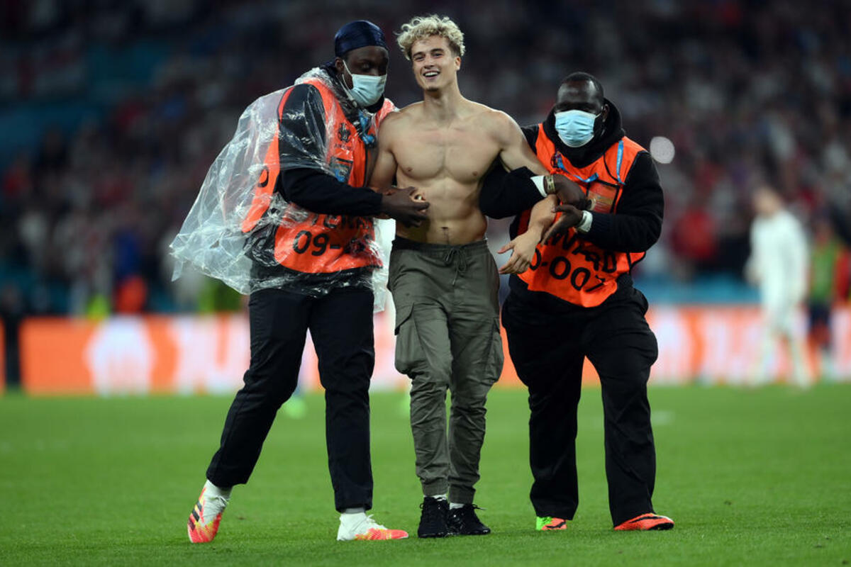 NIJE MOGAO DA ČEKA PRODUŽETKE: Navijač utrčao na teren Vemblija, pokazao mišiće pa ga redari odveli... (FOTO)