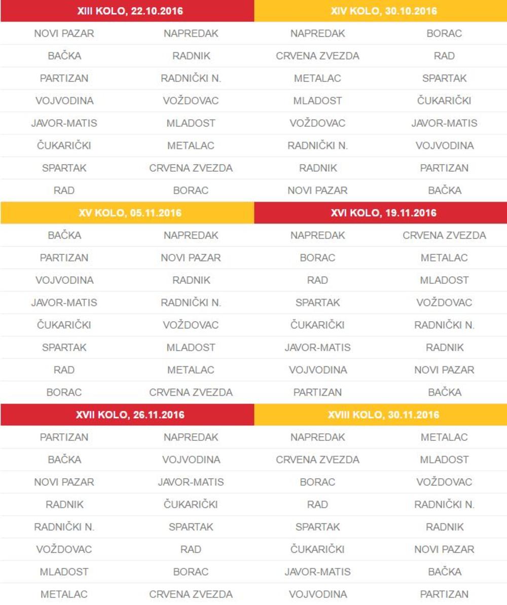 Kompletan raspored do kraja polusezone: