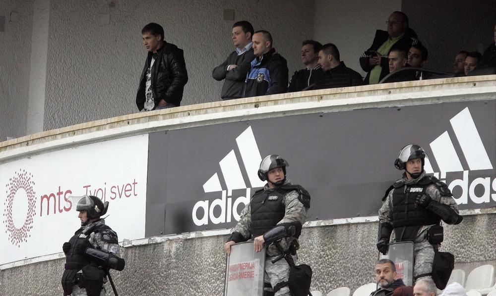 Na istočnoj tribini se tokom meča začulo skandiranje "Vučiću, pederu", što je i do sada bilo neizostavno na mečevima crno-belih, ali sada je to sprečeno batinama.