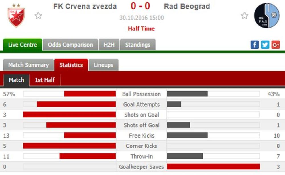 40. minut - Uspeli su crveno-beli da probiju po strani nekoliko puta, ali to nije bilo dovoljno da se savlada golman gostujuće ekipe.