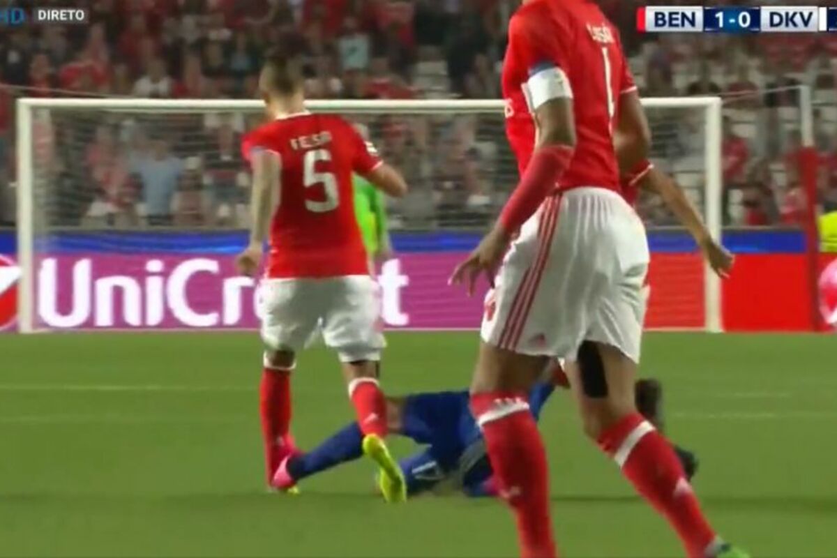 Standarni član prve postave "orlova" i Benfike bio je žrtva brutalnog starta fudbalera Dinama iz Kijeva, Sergeja Ribaljke, koji je otvorenim đonom startovao na njegov zglob.