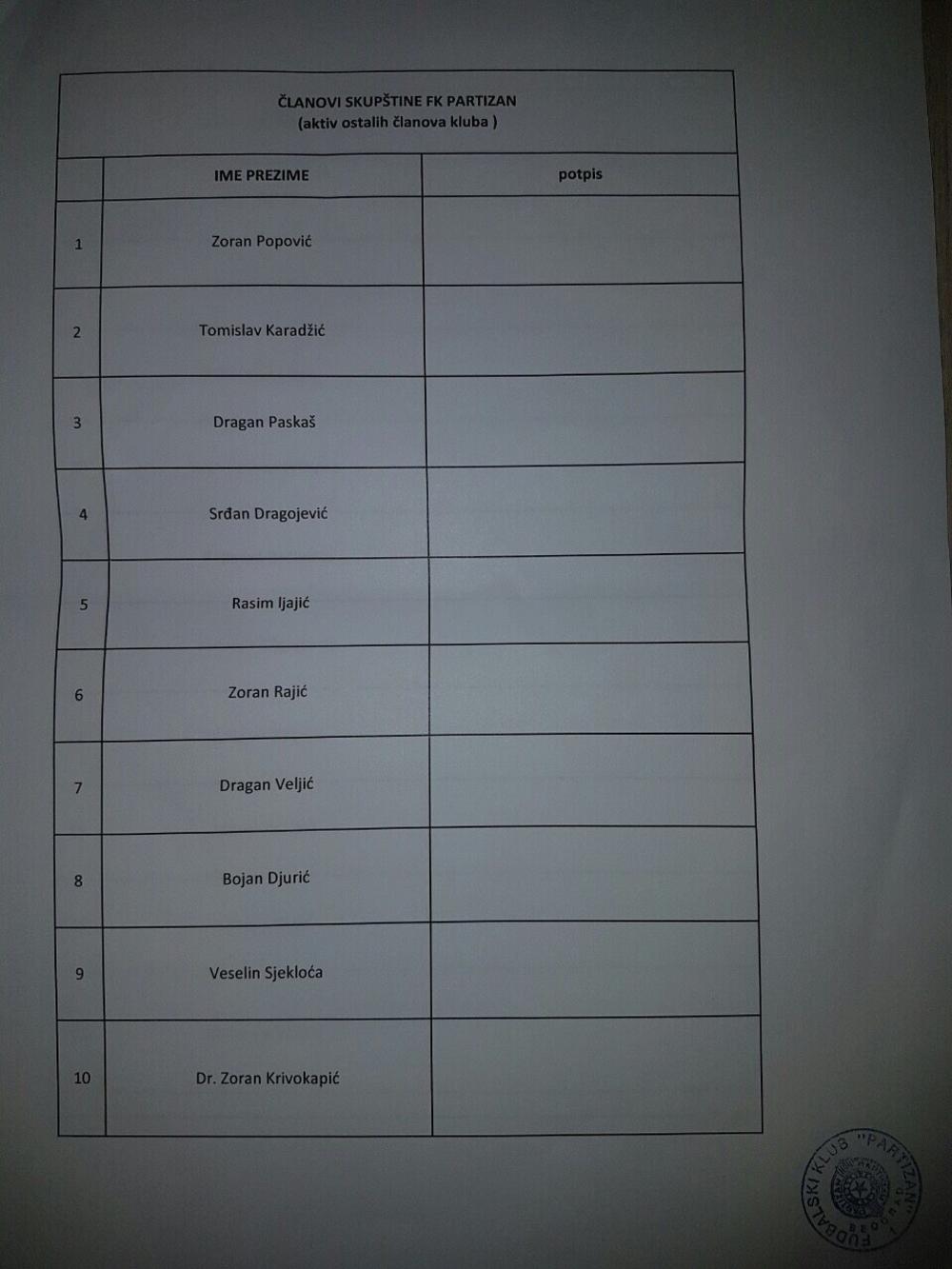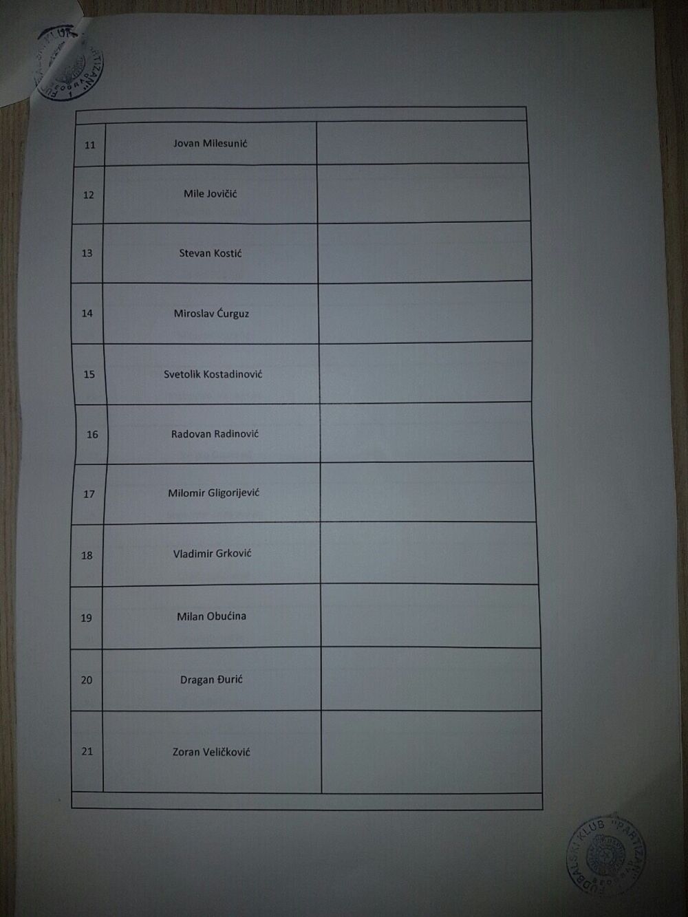 Spisak koji nam je nedavno, pak, dostavilo na uvid aktuelno rukovodstvo, za koji tvrdi da je jedino validan, drastično se razlikuje, na njemu se nalazi i potpis jedinog prisutnog - Uroša Mijatovića, uz imena navijača koji nisu uzeli učešća na Skupštini: Slaviše Veletića, Aleksandra Vidojevića, Dragana Đurđevića i Davora Miljkovića.