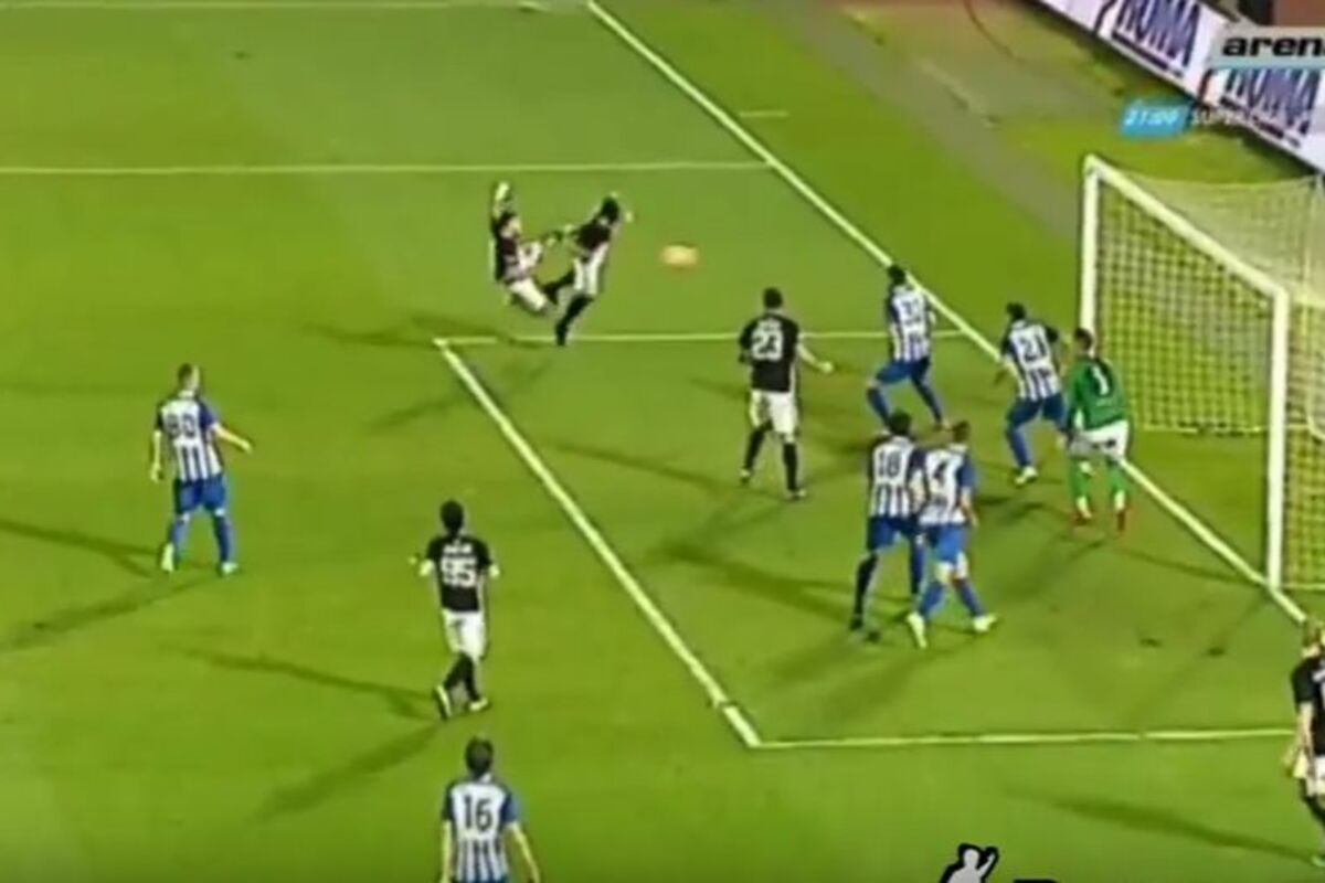Marjanović je centrirao, a u istom trenutku su na loptu krenula dvojica napadača crno-belih, jedan nogom, a drugi glavom.