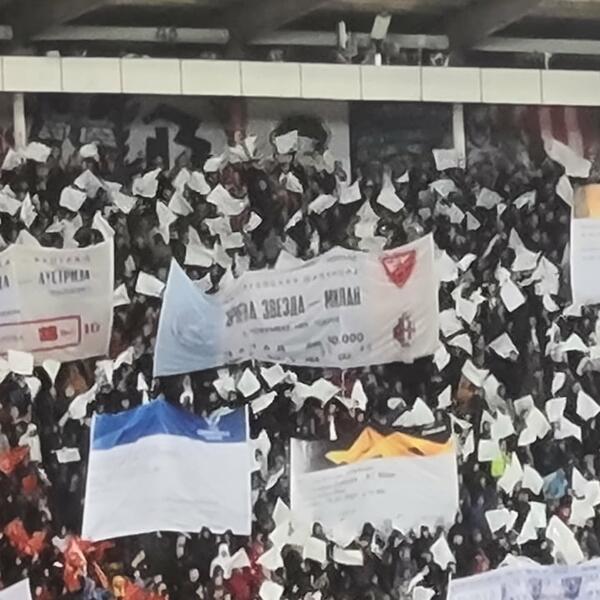 Među ostalim tu su one sa duela sa Bajernom, Milanom, Liverpulom, a ispod svega je transparent: "I sve je kao pre".