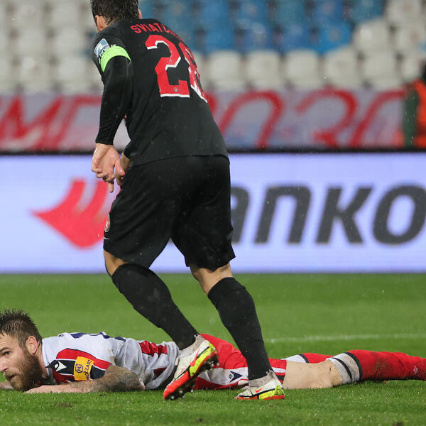 12. minut - Isaksen je pobegao odbrani Zvezde, Degenek ga je srušio pred kaznenim prostorom i zaradio direktan crveni karton!