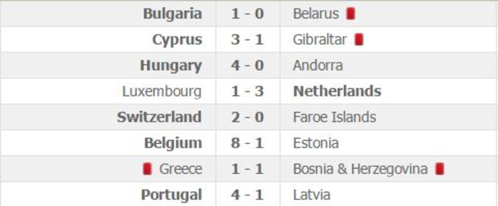 Portugal je kod kuće pobedio Letoniju sa 4:1. Kristijano Ronaldo je postigao dva gola i promašio penal, ali je evropski prvak ovim trijumfom došao na drugo mesto u grupi, sa devet bodova, tri manje od Švajcarske, koja je ranije pobedila Farska Ostrva 2:0. Mađarska je treća sa sedam bodova.