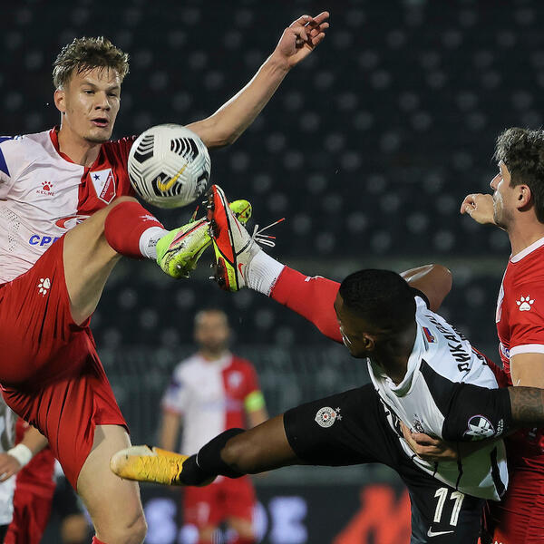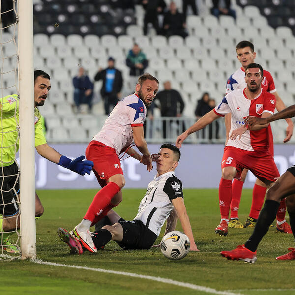 20. minut - Kakva šansa za Partizan! Izveo je Jojić korner sa leve strane, Rikardo poslao loptu ka golu, tu je bio Urošević koji je nogom prosledio ka mreži ali je sa gol linije izbacio Simić.