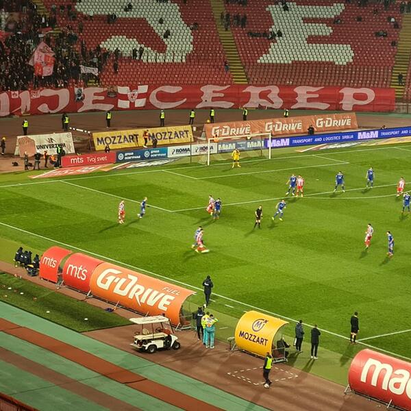 O dominaciji ekipe Dejana Stankovića u prvom delu meča dovoljno govore korneri. Čak sedam udaraca iz ugla imali u prvih 45. minutacrveno-beli.