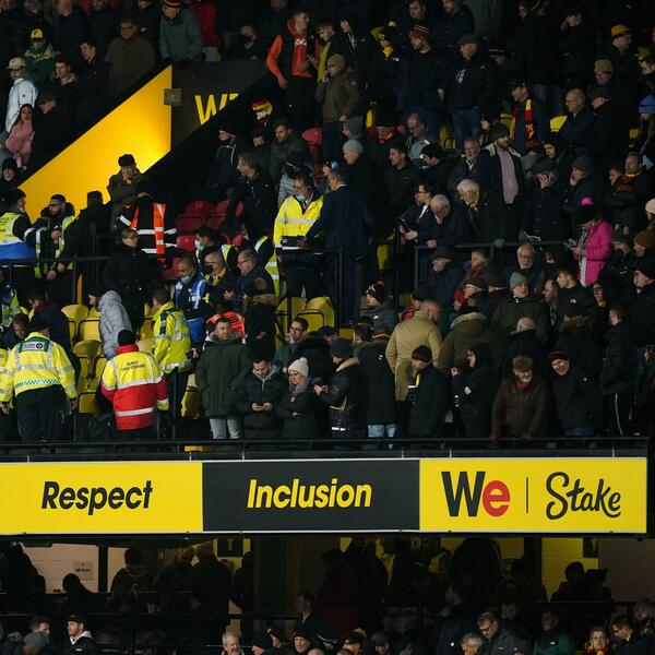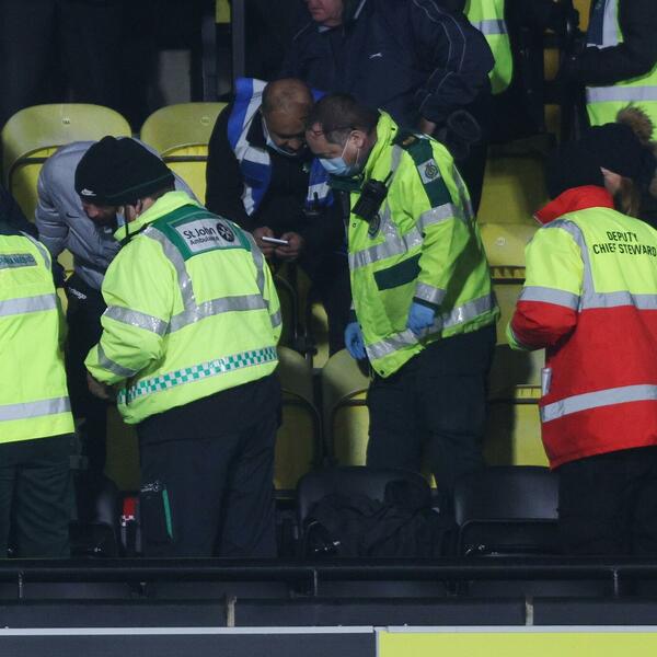 Utakmica Premijer lige između ekipa Votforda i Čelsija prekinuta je u prvom delu zbog toga što je jednom navijaču domaće ekipe pozlilo na tribinama.