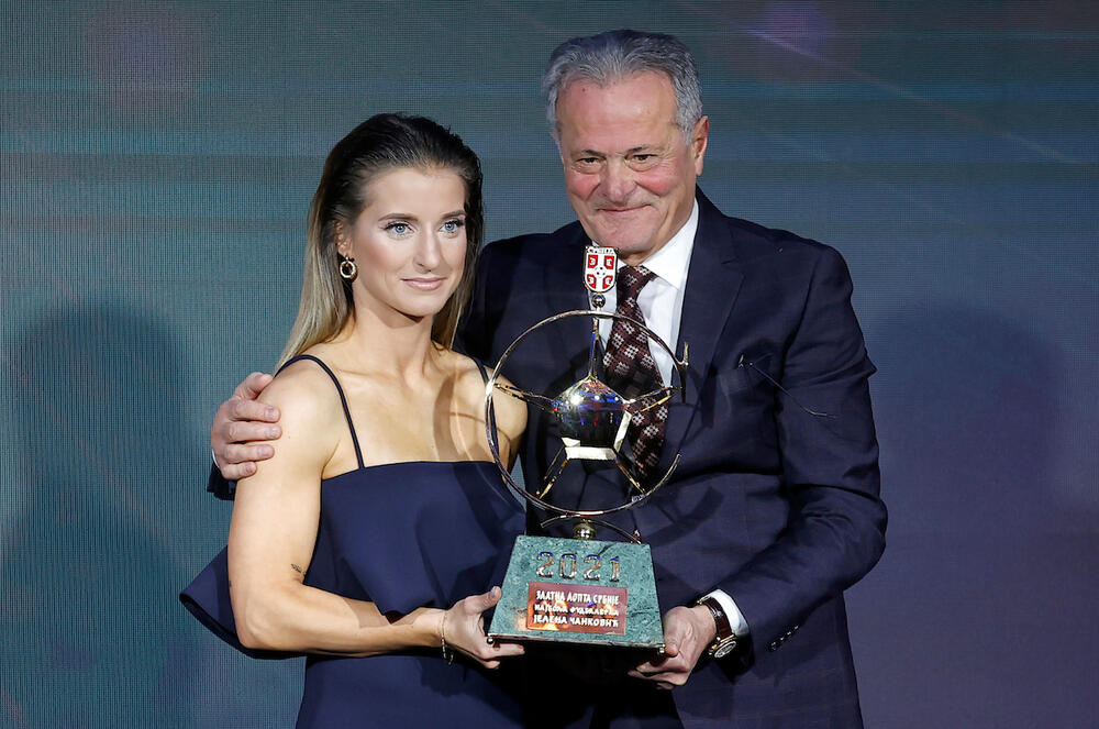 On je potom dodelio Jeleni Čanković nagradu za najbolju fudbalerku Srbije u godini na izmaku.