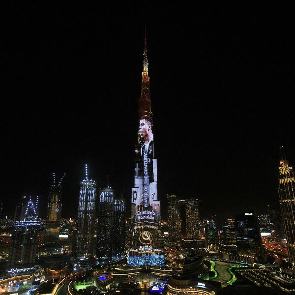 Naime, Ronaldov lik našao se na najvišoj zgradi sveta - Burdž Kalifi (828 metara). Povod za tako nešto bio je to što je CR7 dobio priznanje na ovogodišnjem "Globe Soccer Awards".