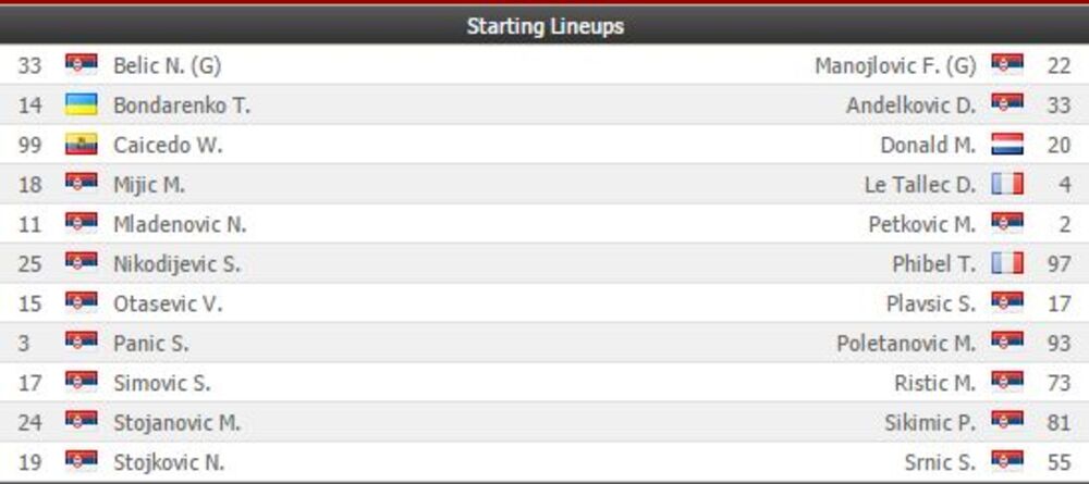 14:30 - Evo i zvaničnih sastava za današnji duel.