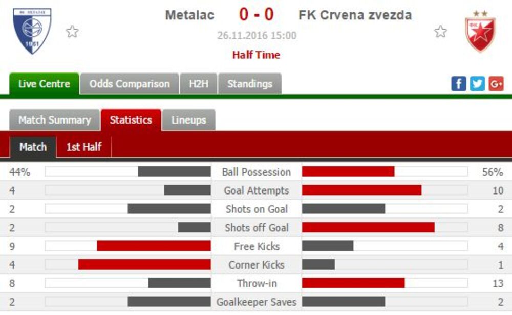 1. minut - Prva je pripretila Zvezda preko Anđelkovića, ali bez pogotka na samom startu. Bila je ovo velika prilika, ali su se odbrambeni igrači domaćina dobro snašli.