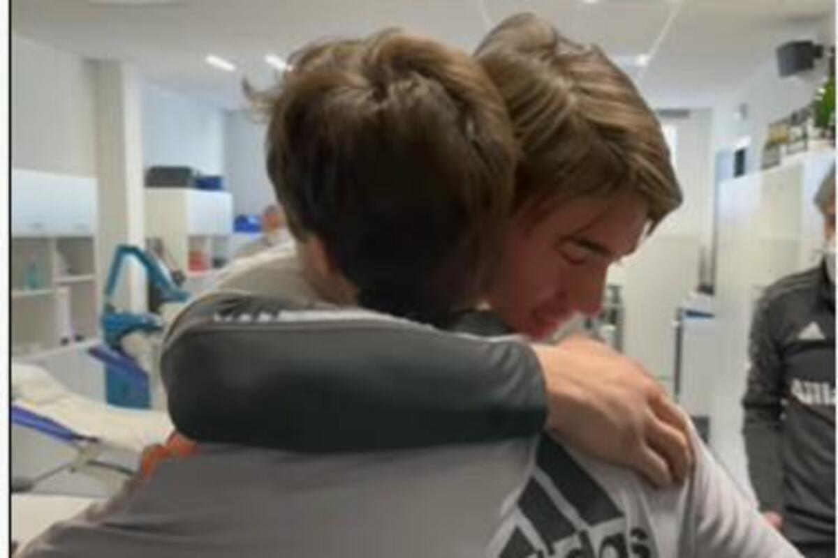 Lice Federika Kjeze na snimku jasno odaje koliko mu je stalo da vidi Dušana Vlahovića. I kod Srbina su proradile emocije, jedva je čekao da zagrli Kjezu, ali je to učinio vrlo pažljivo, pazeći na njegovo zdravstveno stanje i štake pomoću kojih se kretao.