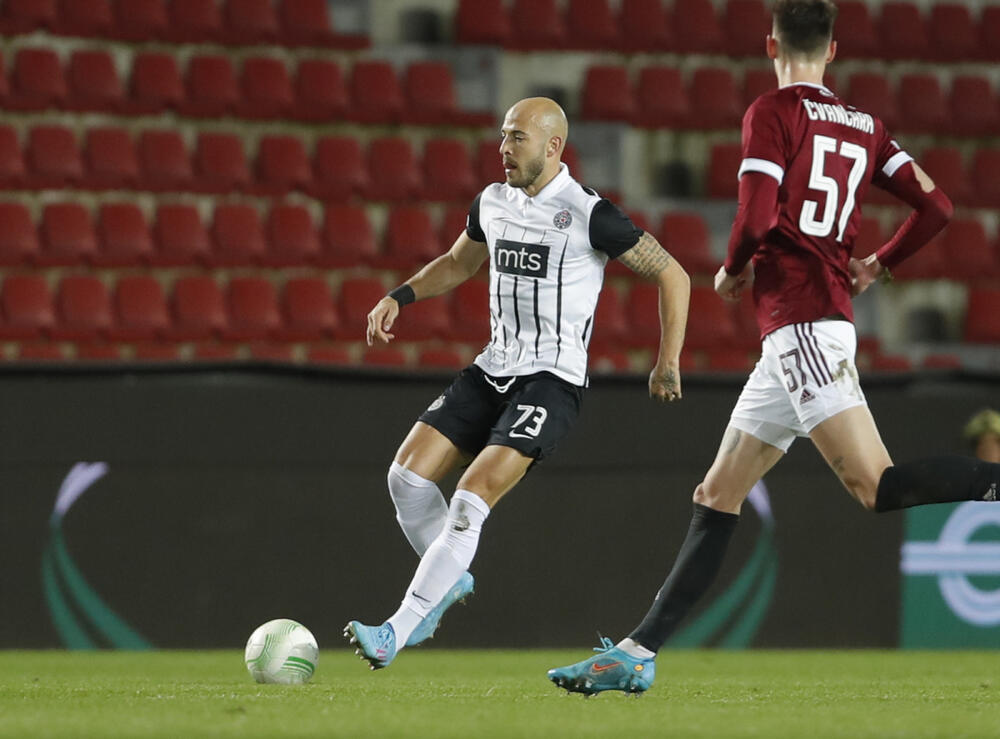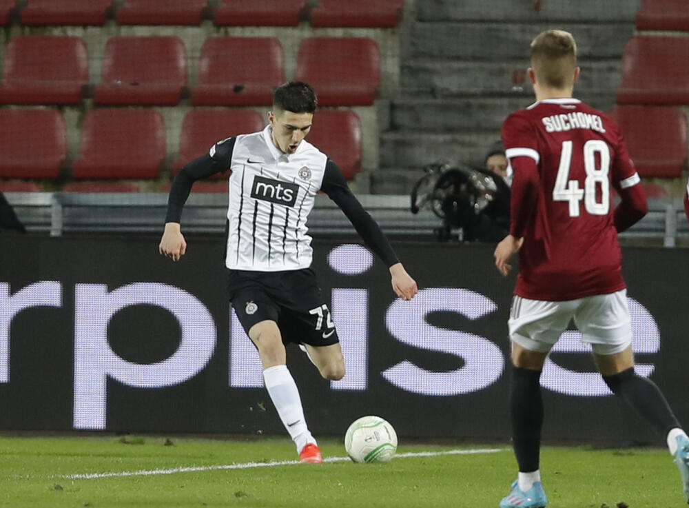 Fudbaleri Partizana su golom Kvinsija Meniga pobedili Spartu u Pragu u prvoj utakmici plej ofa Lige Konferencija sa 1:0.