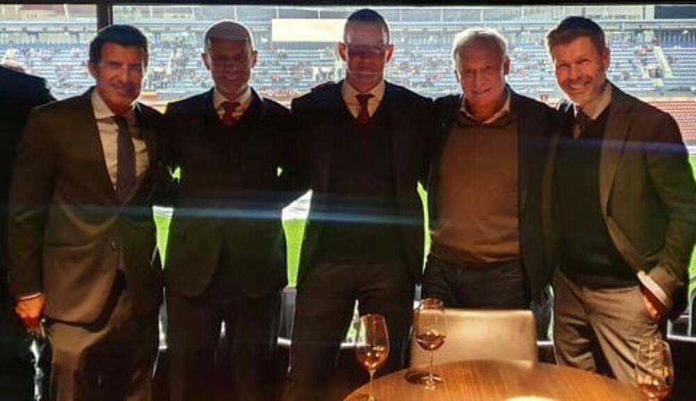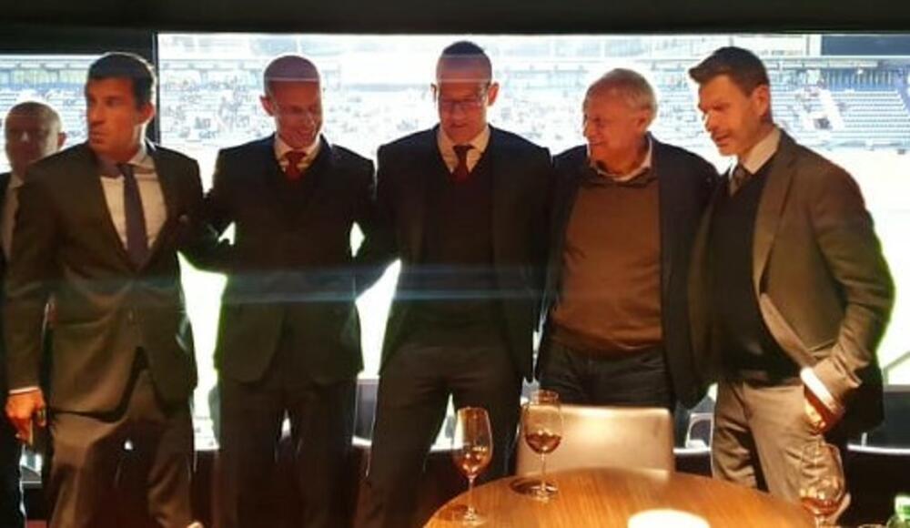 U loži stadiona "Letna" predsednik Partizana Milorad Vučelić, slikao se sa direktorom nacionalnih asocijacija UEFA-e Zoranom Lakovićem, ali i predsednikom evropske Kuće fudbala, Aleksanderom Čeferinom, i fudbalskim legendama - Zvonimirom Bobanom i Luišom Figom.
